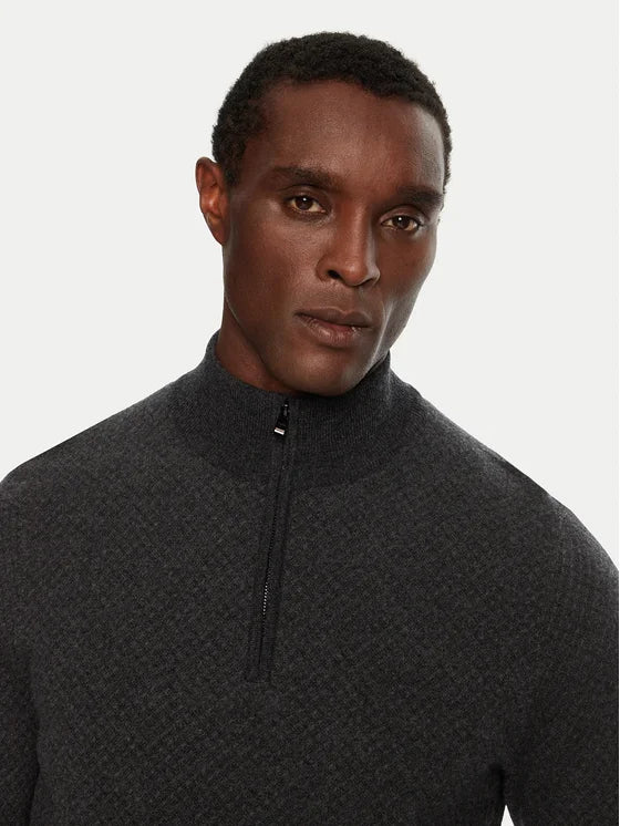 BOSS Two-Tone Wool Quarter Zip