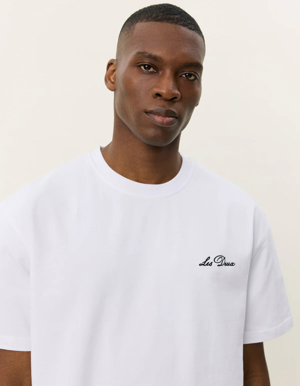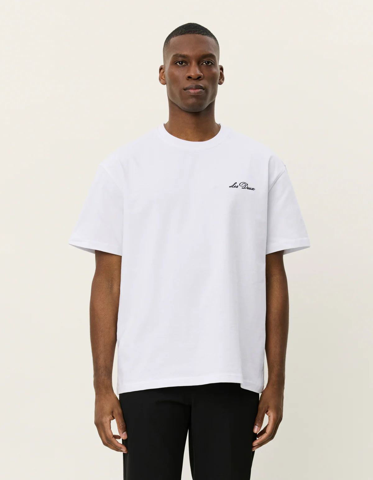 Cursive Les Deux logo embroidered at the chest