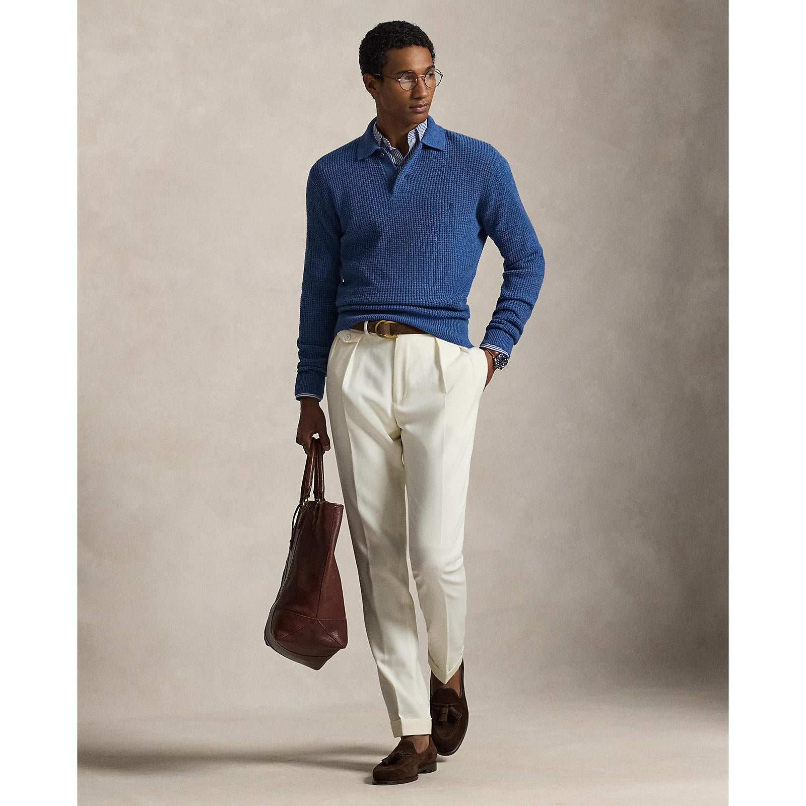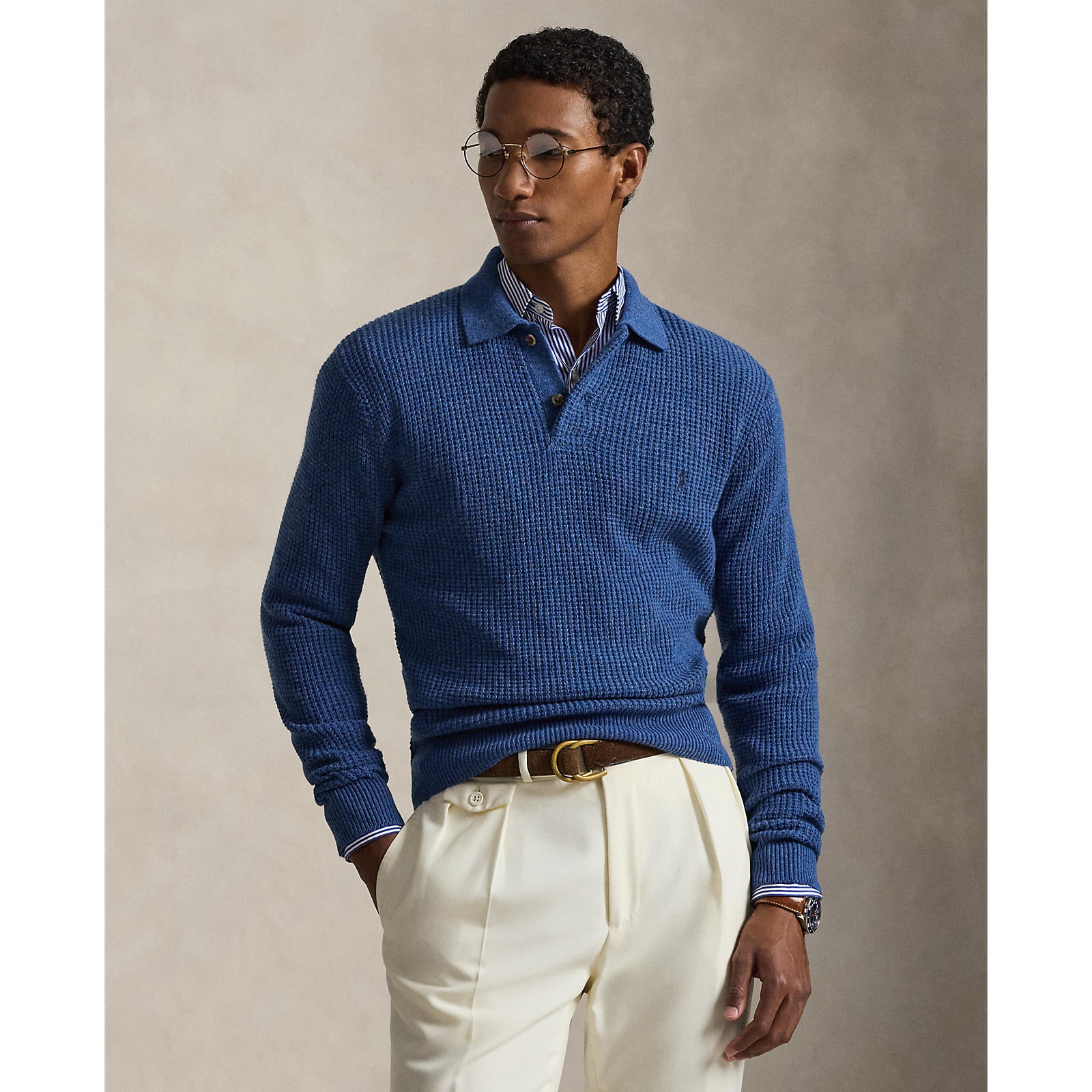 Polo Ralph Lauren Textured Wool-Cotton Polo-Collar Sweater