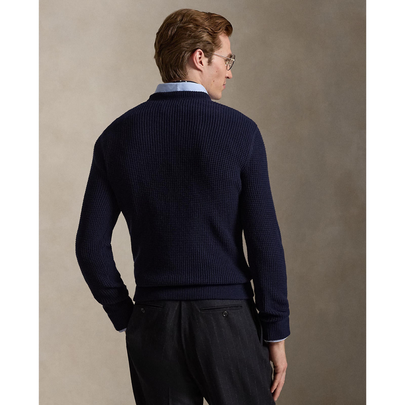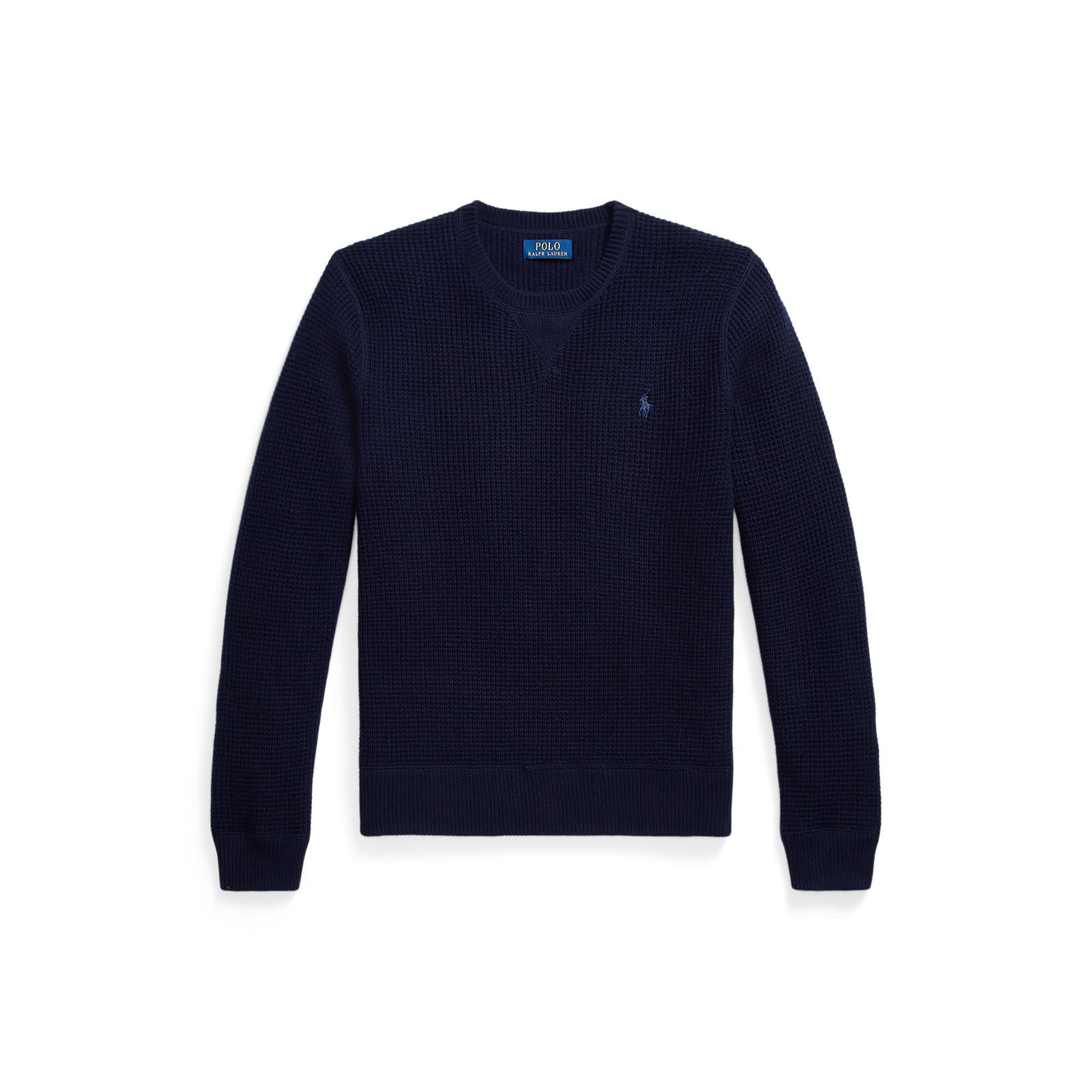 A refined cold-weather staple, this Polo Ralph Lauren crew neck jumper is crafted in a textured waffle knit for depth and warmth. The rich navy tone pairs effortlessly with tailored trousers or denim, while the classic silhouette makes it ideal for smart-casual layering over shirts or under outerwear. Finished with the iconic embroidered Pony at the chest, it delivers timeless style with everyday versatility.