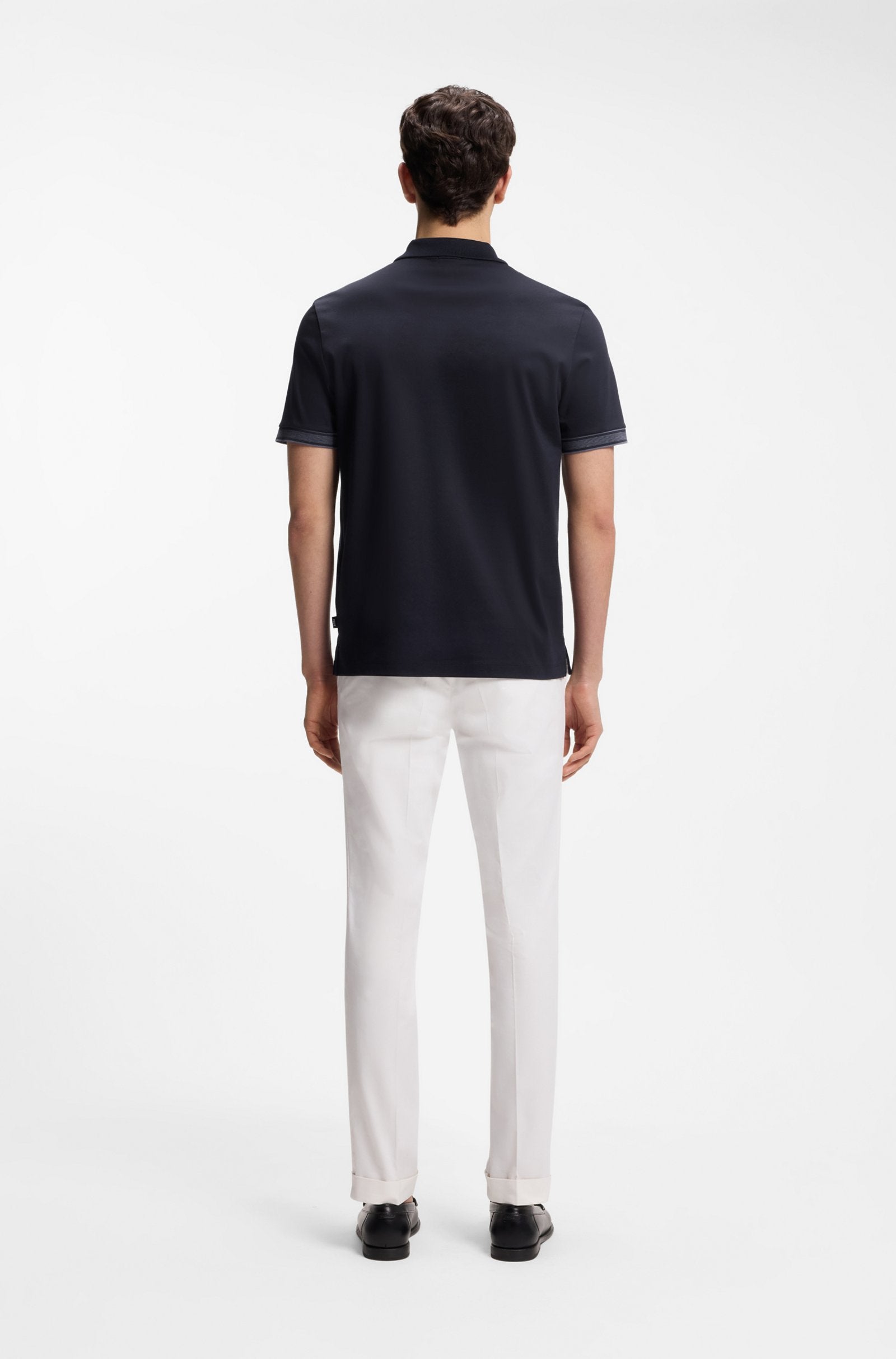 BOSS Mercerised-cotton polo shirt with striped trims