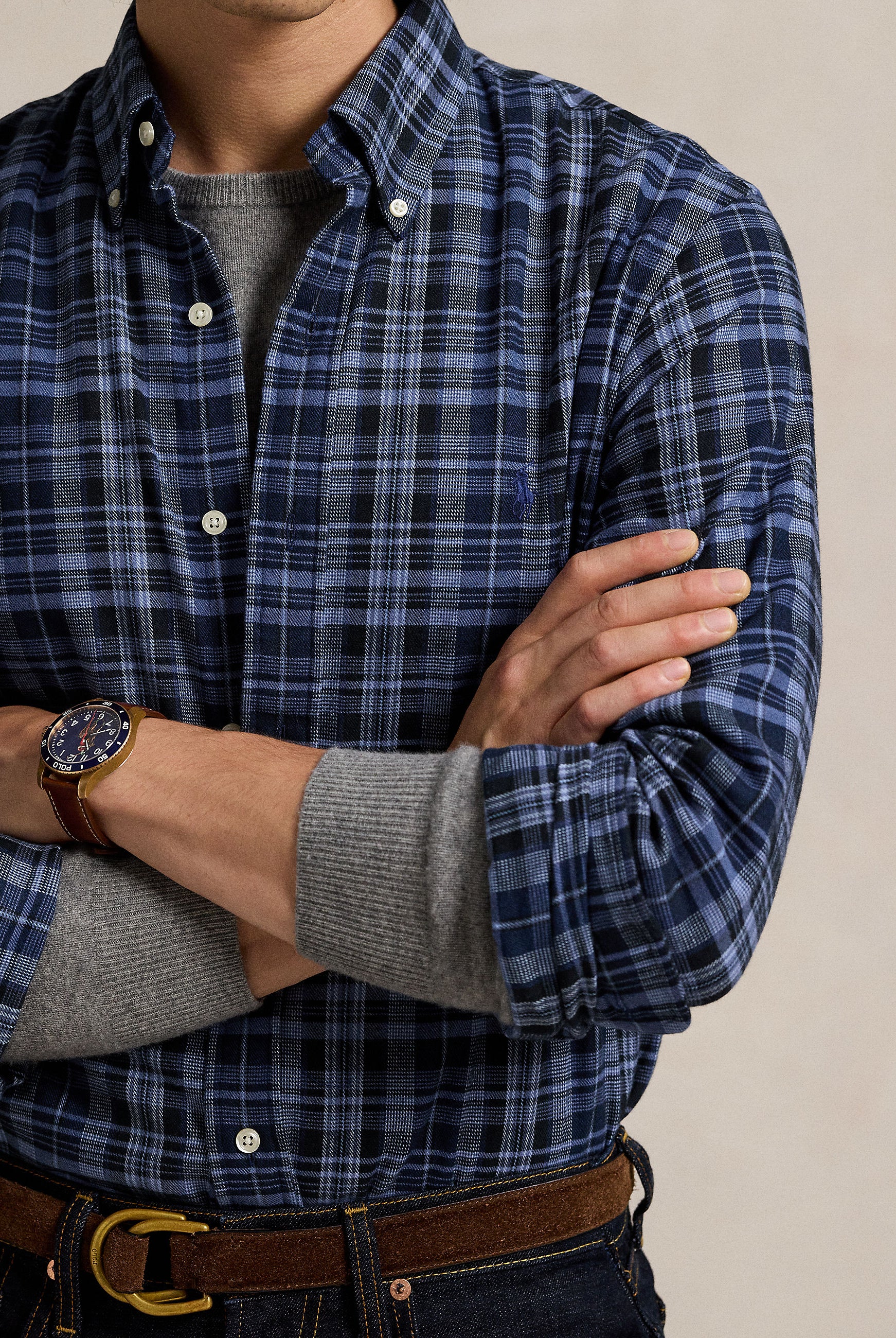 Polo Ralph Lauren Custom Fit Plaid Brushed Oxford Performance Twill Shirt